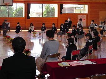 入学式を行いました。規模は縮小しましたが、PTA会長さん、PTA副会長さんに御臨席を賜り、温かい雰囲気のなか、13名の新入生を迎えました。どの子もしっかりとした態度で式に臨みました。式後、通学班の確認や保護者会などを行いました。