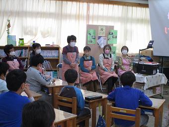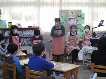 3年生が1年生の教室に出向き、読みきかせを行いました。3年生にとっては、相手意識をもって読みきかせをすることで、また1年生は物語に触れることで、国語の力を高める取組です。3年生も1年生も、真面目に、一生懸命学習していました。
