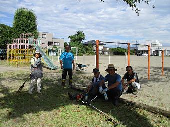 始業式を間近に控え、楡小草刈り隊の方々が、伸び放題だった校庭の草刈りを行って下さいました。早朝より有志が集まって下さり、通常1時間の作業時間のところを、ここもやろう、もう少し、と言ってくださいながら、1時間半も作業をして下さいました。お陰で校庭も見違えるようにきれいになり、月曜日からの2学期が気持ちよくスタートできます。参加いただきました草刈り隊の皆様、大変ありがとうございました。