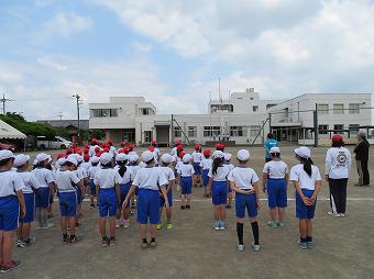 業間に運動会全体練習を行いました。入場から開会式の流れの練習です。高学年を中心に、どの子も一生懸命、自分の役割を果たしていました。