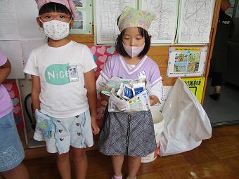 これまで給食時に飲み終えた牛乳パックは、各クラスでスーパーのレジ袋にまとめて入れ廃棄をしていました。レジ袋有料化に伴い、健康委員会の子供たちが、チラシで牛乳パック入れを作ることとなり、今日から各クラスで使い始めました。昭和の技がこんなところにも生かされています。