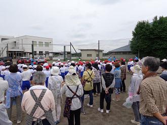 コミュニケーション力、感謝する気持ちを育てる目的で、「なかよし除草」を行いました。地域コーディネーターの方が呼びかけてくださり、各町から総勢50名以上の方が参加し、子ども達と一緒に除草をしました。子ども達のめあては「同じ班の地域の人すべてと必ず一回は会話する。」です。めあて通り、どの子も会話を楽しみながら除草していました。終了後、それぞれの班で振り返りをしました。子ども達からは「楽しい話をしながらだったので、あっという間でした。」「地域の人のおかげできれいになって気持ちいいいです。」といった感想が聞かれました。地域の方からは「子どもが3人もお世話になった学校なので、このぐらいのことはいつでもやります。」という,とても嬉しいお話がありました。子ども達が授業に戻った後も、地域の方は残って、作業を続けて下さいました。地域に支えられている楡木小の良さを再確認したひとときでした。参加いただきました皆様、大変ありがとうございました。