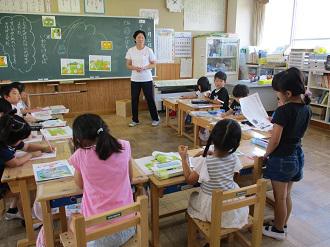 朝の読書の時間に、KLVの皆さんが1・2年生に読み聞かせをしてくださいました。最初に、この前の読み聞かせで途中だった「あらしのよるに」を、続いて、「小さなねこ」という絵本を紹介してくれました。どの子も目を輝かせながら、食い入るようにお話の世界に浸っていました。
