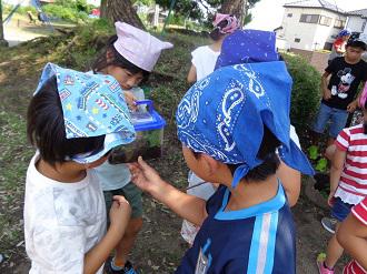 昼休み。どの子も思い思いの遊びに没頭しています。ドッチボール、サッカー、追いかけっこ、ブランコ。5年生が段ボールに入れたクワガタを見ています。聞くと5年教室に迷い込んできたとのこと。2年生も虫かごにクワガタを入れています。聞くと、体育館近くにいたとのこと。チャイムが鳴ると一斉に昇降口に向かって走りだしました。