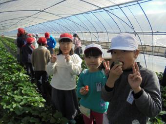 3年生が社会科で地域のいちご農家を見学に行きました。本校地域の特産物であるいちご栽培を調べることで「働く人々のくふうや願い」を感じることをめあてとしています。地域のいちご農家さんが全面的に協力してくださり、子ども達がこれまで学校で調べて疑問に思ったことや、いちごを育てるにあたっての工夫や願いを、わかりやすくお話いただきました。なっているいちごを食べさせていただいたり、帰りにはお土産までいただいたりして、子ども達は満面の笑みを浮かべていました。ご協力いただきました中田様、大変ありがとうございました。