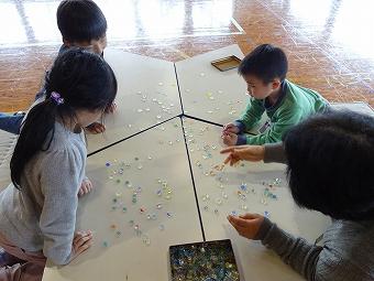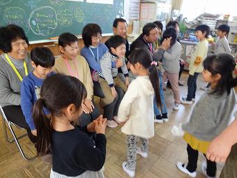 1年生が生活科で昔の遊び体験を行いました。自分のおじいさん、おばあさん、地域の方にボランティアティーチャーとなっていただき、昔の遊びを教えていただきました。コマ回し、羽根つき、お手玉、あやとり、おはじき。今はもうなかなか遊ぶことのない昔の遊びの方法を教えていただきました。子供たちは、いつの時代も遊びが大好き。おじいさん、おばあさんと楽しく夢中になって遊んでいました。授業後は一緒に給食を食べるなど、世代を超えて楽しいひとときを過ごしました。ボランティアティーチャーになっていただいた方々、大変お世話になりました。
