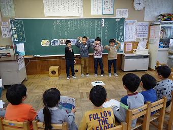 1年生が国語で「たぬきの糸車」の音読発表会を行いました。どのグループも、登場人物になりきって、動作を交えて、楽しく、一生懸命、音読していました。