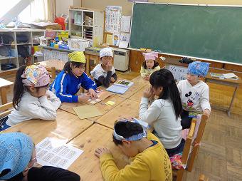 清掃の時間に各なかよし班ごとに6年生を送る会でプレゼントする色紙作りを行いました。5年生がリーダーとなり、心のこもった色紙をみんなで相談しながら作り上げていました。また同じ時間に、6年生は、お世話になった学校への恩返しとして、教室をきれいに清掃していました。ドアの溝やトイレまで丹念に磨き上げていました。