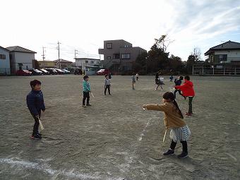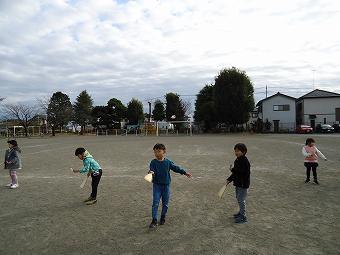 1年生が生活科で昔のおもちゃ体験を行いました。竹とんぼ、羽子板で、子供たちは夢中になって遊んでいました。