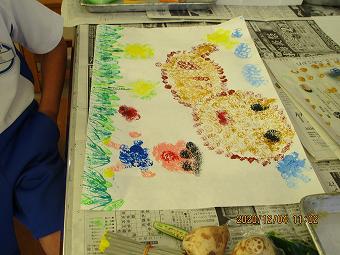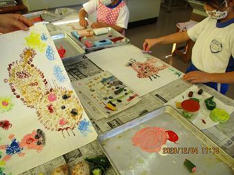 1年生が図工で、「スタンプスタンプ」の学習をしました。野菜などで作ったスタンプで絵をかく学習です。どの子も創造の翼を思う存分広げて、楽しそうに学習していました。