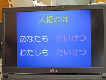 人権集会を行いました。放送室から全教室へ配信するかたちでしたが、どの学級もしっかりと集会に参加していました。友達の人権についての作文を聞いたり、人権に関する図書「へなちょこ」の読みきかせをきいたり、「世界中の子供たちが」の歌を歌ったりしました。幸せな人生を保障するカード、人権についてみんなで理解を深められました。