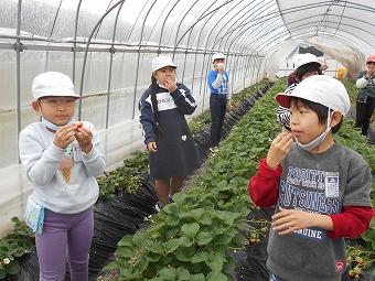 3年生が地元のいちご農家を見学しました。毎年、お世話になっている方です。今回もいちご栽培のやり方を学んだのち、いちごをたくさん食べさせていただきました。また帰りにはお土産までいただきました。毎年、本校の子供たちのために尽力いただき、大変ありがとうございます。
