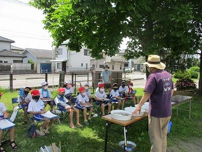 活動後、渡辺先生から生き物について話を聞き、ビオープに放しました。「プールの中の生き物救出作戦」大成功です!「こんなにたくさんの生き物がいてびっくりした」「ヤゴがどんなところにいるのかわかった」という感想がありました。また、羽化途中のシオカラトンボを観察することができたり、ヤゴに触ったのは初めてという子もいて、よい経験にもなったようです。