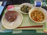 メニューは、ミニココアロール、牛乳、カレーうどん、のりあえ、とちおとめゼリーでした。