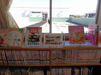 2月に入り、図書室の掲示が変わりました。テーマは「バレンタイン」。チョコレートやお菓子の作り方などの本を特集しています。楽しい図書室には、いつも子どもがたくさん訪れています。