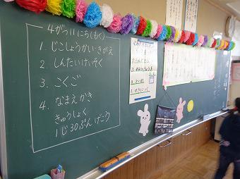 新年度が本格的に始動しました。各学年とも、落ち着いて朝の会を行っていました。1年生はお道具箱の整理の仕方を学んでいました。