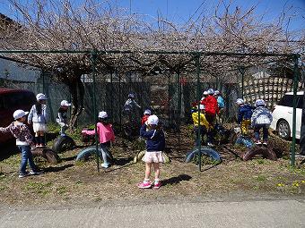 1年生が校庭を探検しました。目新しいものばかりに、どの子も大興奮!目を輝かせながら敷地内を回っていました。