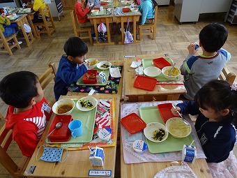 1年生が初めての給食を食べました。これまで牛乳が苦手だった子も、一生懸命に挑戦して、みごと完飲するなど、どの子も初めての給食を楽しんでいました。