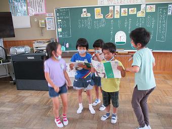 1年生が国語で「おむすびころりん」の音読劇を行いました。どの子も一生懸命、楽しそうに演じていました。