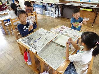 手作り科学クラブで、大きなシャボン玉作りを行いました。どの子も、大きく長持ちするシャボン玉はどうすればできるか、を考えながら、何度も何度も大空にシャボン玉を飛ばしていました。