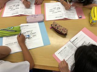 海の図書館で振り返りを行いました。それぞれのめあてについて、この二日間どうだったかを、どの子も真剣に考え、鉛筆を走らせていました。振り返りの欄には、みんなと協力して楽しかった、もっといろいろやりたい、自分のめあてをしっかりと守れた、といった感想がたくさん見られました。この二日間、どの子も得がたい体験をして、大きく成長したと思います。
