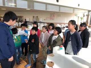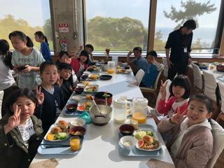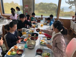 海浜自然の家では最後の食事です。この施設の食事は美味しかったですか?の問いかけに全員が、はい、と答えていました。