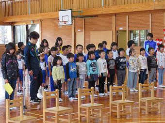 業間に入学式の練習を行いました。14名のかわいい入学生を、心をこめてお迎えする準備です。どの子も一生懸命練習に取り組んでいました。明日の入学式が楽しみです。