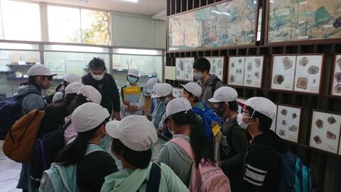 化石の専門家を講師にお迎えして、地層、化石のでき方についてのお話をしていただきながら見学です。