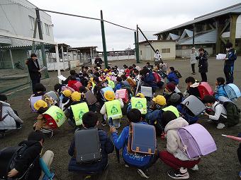 下校時、児童と職員で通学路を点検しました。危険箇所や子供110番の家などを確認したり、正しい登下校の仕方を学んだりしました。これからも交通事故ゼロを目指します。