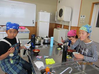 5年生の家庭科で調理実習を行いました。ご飯と味噌汁作りです。どの班も煮干しからだしを採り、本格的な味噌汁に挑戦しました。できあがって試食会。あちこちから「おいしい。」との声が聞かれました。