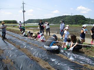 南押原地区青少年育成市民会議主催『子ども農園』の活動が始まりました。「家庭の日」推進事業の一環として、小学生以下の子ども達、保護者が、南押原コミュニティーセンター東側の畑にサツマイモを植え、育てていく催しです。本校児童も多数参加し、みんなでサツマイモの苗を植えた後、コミュニティセンター内で折り紙を体験したり、千葉省三記念館を見学したり、と子ども達、保護者ともども、楽しい時間を過ごしました。