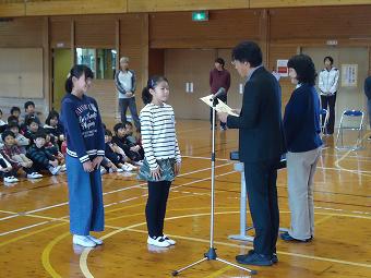 業間の時間に表彰集会を行い、それぞれの分野での活躍を全員で祝福しました。賞をいただいた子だけでなく、楡小っ子全員の励みになりました。