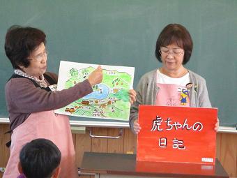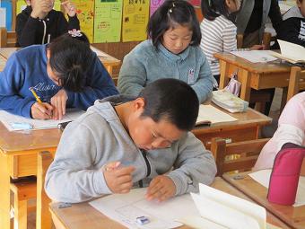 4年生が総合的な学習の時間に、KLVの方をお迎えして「千葉省三に学ぶ」の学習を行いました。「虎ちゃんの日記」8月10日の紙芝居をKLVの皆さんにやっていただいたあと、8月11日を想像して書く、という学習です。どの子も想像の翼を広げて、楽しいお話を作り上げていました。その発想力にKLVの皆さんの感心しきりでした。KLVの皆さん、大変ありがとうございました。