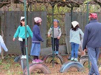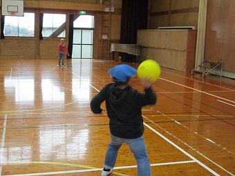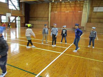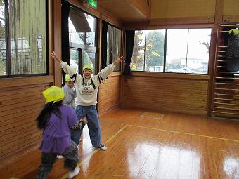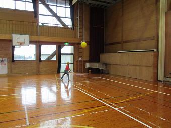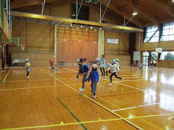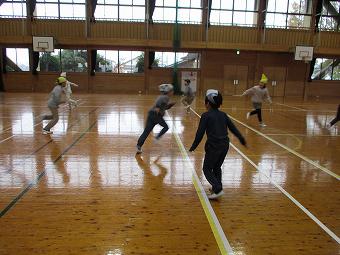 昼休み。雨が降っていたので、体育館を開放しました。どの子も、元気に体を動かしていました。
