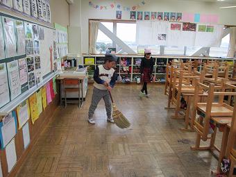 清掃の時間の様子です。どの子も一生懸命学校をきれいにしていました。