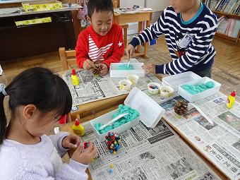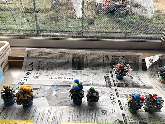 1年生が生活科で松ぼっくりツリーを作りました。12月に入りました。学校の掲示も12月らしくなっています。