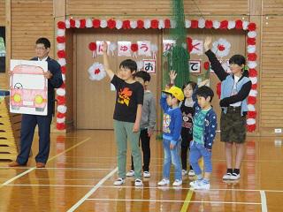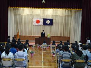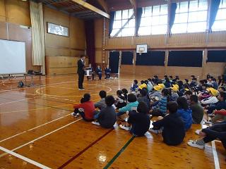 多くの来賓の方々をお招きし、入学式を行いました。今年度の新入生は11名です。3・4年生に手をつないでもらい、担任の先生の後から元気に入場しました。少し緊張した顔のお友達もいましたが、先生の呼名に大きな声で「はい!」と返事をすることができました。お迎えする在校生も立派な態度で式に臨み、2~6年生のみなさんが「歓迎のことば」や「歓迎の歌」で温かく1年生を迎えてくれました。校庭のチューリップや水仙も入学のお祝いをしてくれているようでした。