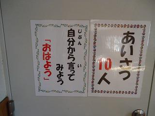 本校では2年前から、「あいさつをしよう」・「かかとをそろえよう」・「時間を守ろう」に取り組んでいます。