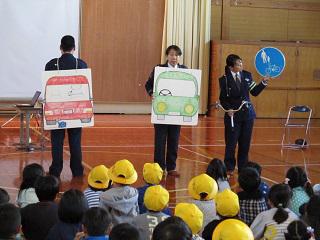 交通安全教室を行いました。まず自転車の正しい乗り方のDVDを視聴してから、鹿沼市役所交通対策係、鹿沼警察署交通課、南押原駐在所の方に、登校班ごと、道路の正しい横断の仕方について実技指導をしていただきました。班長さんや高学年が、低学年や一年生にポイントを教えるなど、どの子も真剣に横断練習をしていました。自転車の乗り方も含め、安全意識を高めるよい機会となりました。