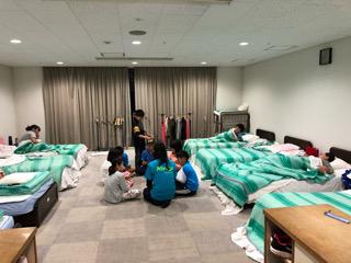 ナイトハイクに行ってきました。風が強かったですが、遠く大洗港の光がとてもきれいでした。その後各部屋に移動して、みんな一緒にウノをしたり、くつろいだりしていました。
