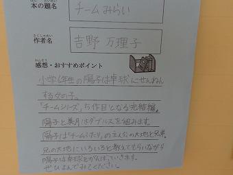1階廊下に、全校生それぞれが自分の読んだ本を紹介する『おすすめ読書カード』コーナーができました。それぞれのカードの上に、これからもどんどん、楽しい本の紹介が貼られていくことでしょう。