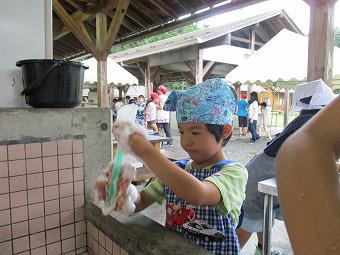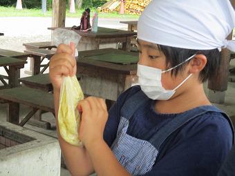 きらら星・月組の合同宿泊学習は予定通り、到着後、オリエンテーション仲間づくり、昼食をはさんで、バナナケーキ作り、そして川遊びを行っています。みんなとても元気で楽しそうです。