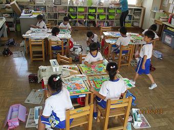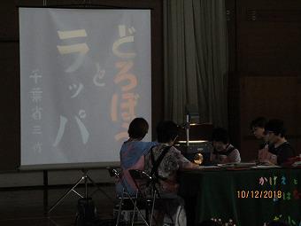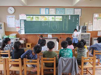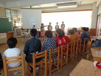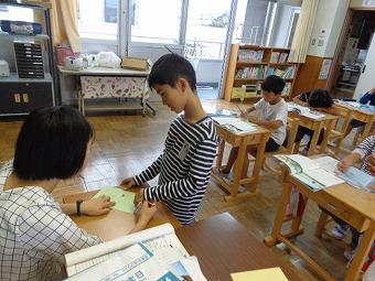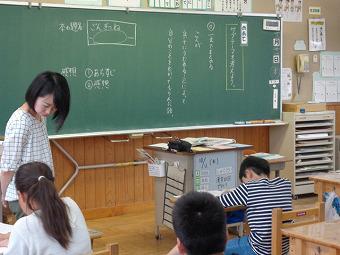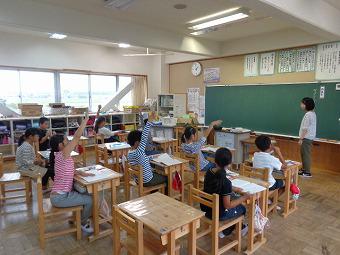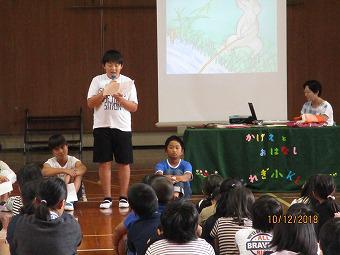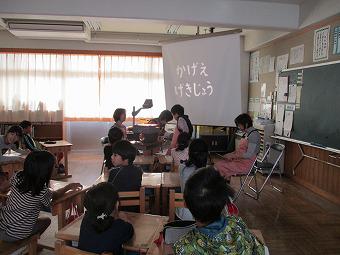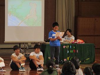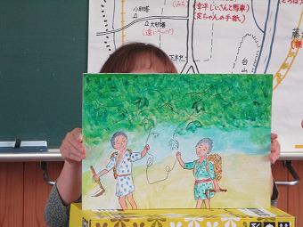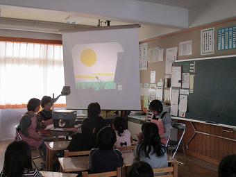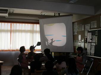 KLVさんにお越しいただき、3,4年生が総合的な学習の時間に、千葉省三について学びました。3年生は「お月さんを食べた話」の影絵を見せていただいた後、「自分もお月さんを食べてみたいです。」「昔は犬をどのように飼っていたのですか。」など、感想や疑問を発表しました。4年生は「虎ちゃんの日記8月10日」を紙芝居で見せていただき、物語の舞台が現在のどのあたりなのか、の説明を受けました。どの子も真剣に話を聞き、感想や疑問などをたくさん出していました。これからの「千葉省三に学ぶ」学習を深めるとてもよい時間となりました。