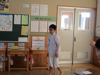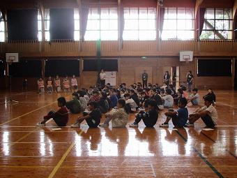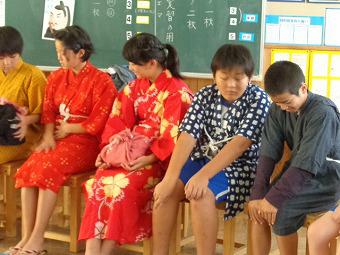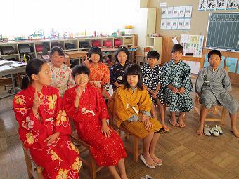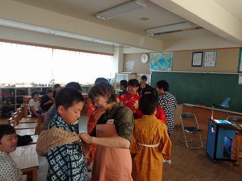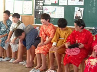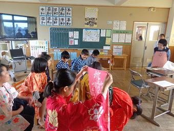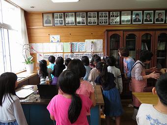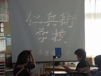 「千葉省三に学ぶ」学習をこれまで行ってきて疑問に思ったことや、もっと深く知りたいことを学ぶために、5・6年生が総合的な学習の時間に、KLVの皆さんをお招きして授業を行いました。当時の着物を着させていただいたり草履を履かせていただいたりして、千葉省三の本に出てくる子ども達の気分を味わいながら、「高原の春」、「二兵衛学校」の影絵を見せていただきました。その後、質問などに答えていただいたり、物語の舞台の場所などを教えていただいたりしました。千葉省三の世界をもっと知ろうと、休み時間に、わざわざはだしになって遊ぶ子も出てきました。今日の学習で、子ども達は千葉省三の世界を、さらに深く理解することができました。KLVの皆さん、大変ありがとうございました。