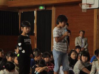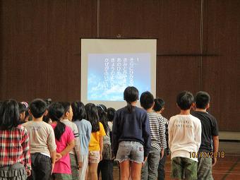 本校では、特色ある教育活動として、「千葉省三に学ぶ」学習を教科横断的に行っています。郷土の誇る児童文学作家千葉省三の生涯、その作品を学ぶことで、郷土愛を育むとともに、本校の目指す児童像「困難に負けずやりぬく子」「思いやりのある協力し合える子」に迫ることをねらいとしています。この学習に地域の方の協力は欠かせません。今日も楡木KLVの皆さんのご協力を得ながら、多くの地域の方、保護者の方に参観いただき、「千葉省三記念行事」を行いました。最初に図書委員がこの日のために練習してきた紙芝居「おさかなにつられたはなし」を発表しました。続いてKLVの方が影絵「どろぼうとラッパ」を上演してくださいました。どちらも心のこもった素晴らしい演目で、誰もが千葉省三の童話世界に惹きこまれていました。その後、全校で「大切なもの」の合唱をしました。続いて代表児童が「影絵がとてもきれいでした。」と感想を述べると、多くの子がうなずいていました。最後にKLV代表の方から、「千葉省三の本を読んで、大切なものとはなにか、を考えてみてください。」というお話をいただきました。KLVの皆様、ご来場いただいた地域の皆様、大変ありがとうございました。