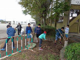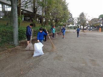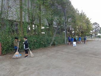 今日から朝の落ち葉掃きがスタートしました。3年生から6年生までは持ち回りで校庭の落ち葉を掃きます。今日は6年生が行いました。どの子も一生懸命取り組んでいました。