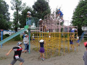 昼休み。子ども達は遊びの天才です。なんでも遊び道具にしてしまいます。どこでも遊び場所にしてしまいます。誰でも遊び仲間にしてしまいます。今日もみんな、それぞれの場所で、楽しく遊んでいます。サッカー、野球、砂遊び、ボール遊び。低学年の子が高学年の子の周りに集まっています。ブランコ。雲梯。ジャングルジム。藤棚。鉄棒では今日も逆上がりの練習をしています。高学年の子がコウモリ飛びをしています。チャイムが鳴ると一斉に昇降口に向かって走りだしました。