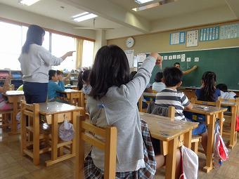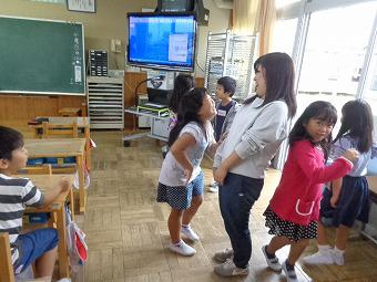 2年生がALTの先生と、外国語活動を行いました。最初、あいさつや今日の天気などを子ども同士で言い合った後、ジョリーフォニックスを使ってアルファベットの発音練習をしました。今日新しく習った発音はC K ck の発音です。その後、みんなで英語の歌を歌ったり、ALTの発音を聞いて単語を書いたりするゲームなどを行いました。どの子も意欲的に英語に慣れ親しんでいました。