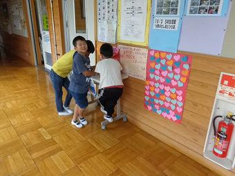 校長室前にハッピーボックスが設置されました。日々の「よかったこと・うれしかったこと」を書いていきながら、「自分の良い点」「友達の良い点」「先生の良い点」、「自分の感動」を発見しつないでいくこと、みんなが幸せになっていくことをねらいとしています。自分のよかったこと・うれしかったこと、友達のよかったこと・うれしかったことを書くために、休み時間になると、子ども達が集まっています。これからもたくさんの「楡小うれかったこと・よかったこと」が発見されていくことでしょう。
