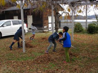 12月になりました。子ども達は元気に登校しています。3年生が自主的に落ち葉掃きをしています。